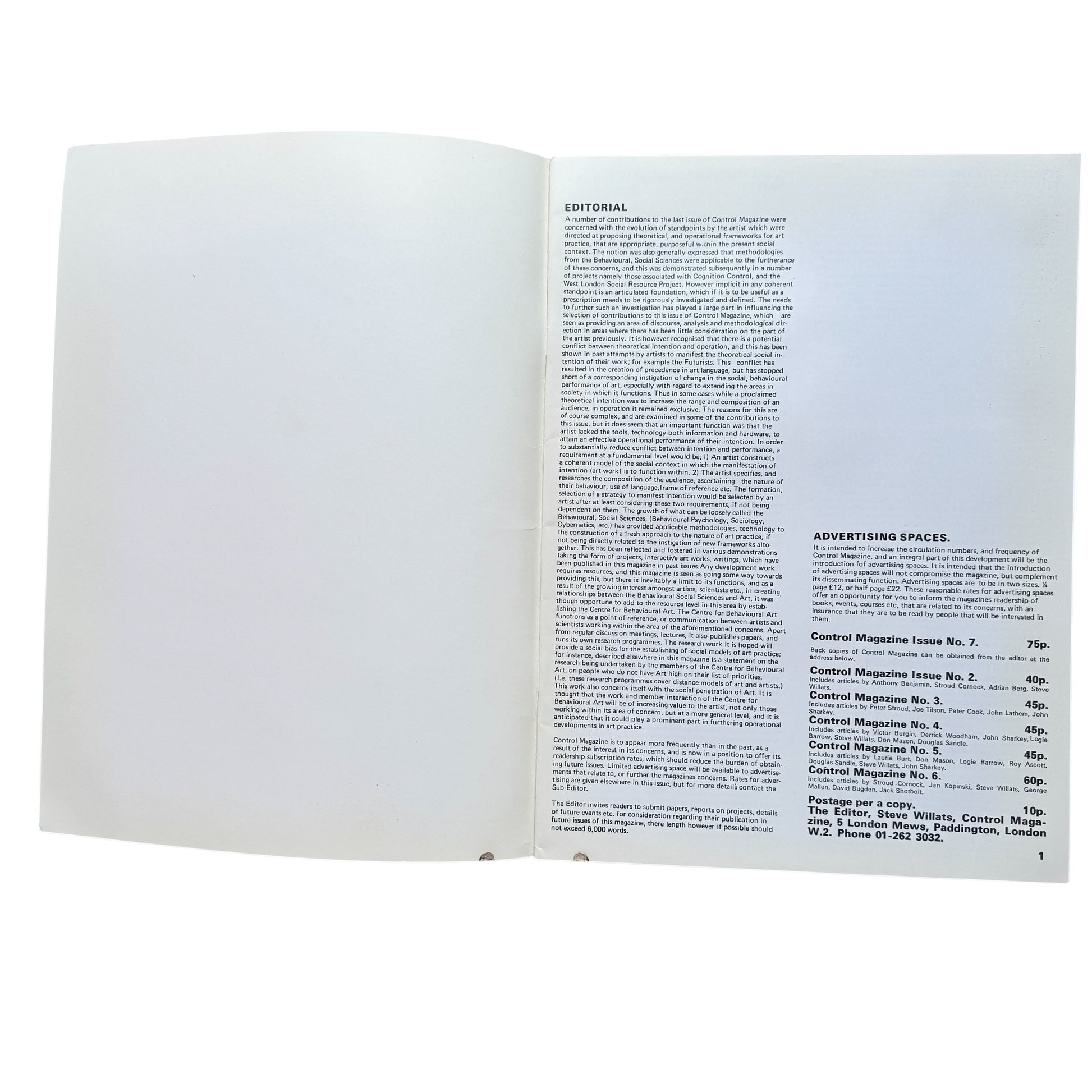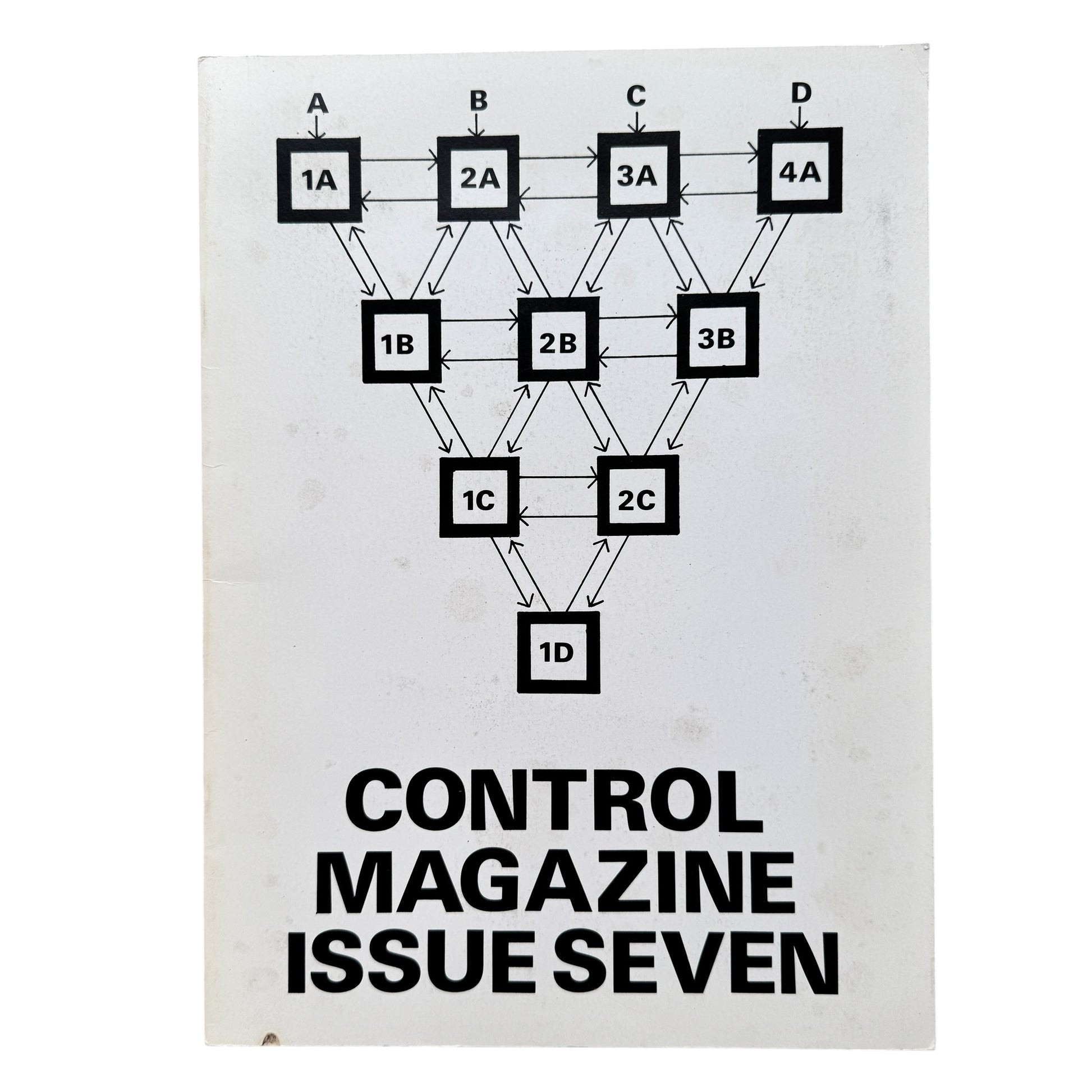 Control Magazine Issue 7, Control Magazine, London (1973), edited by Stephen Willats, Softcover, approximately 20 pages, 10.5 × 8.5 inches (oblong quarto), Condition (Very Good).