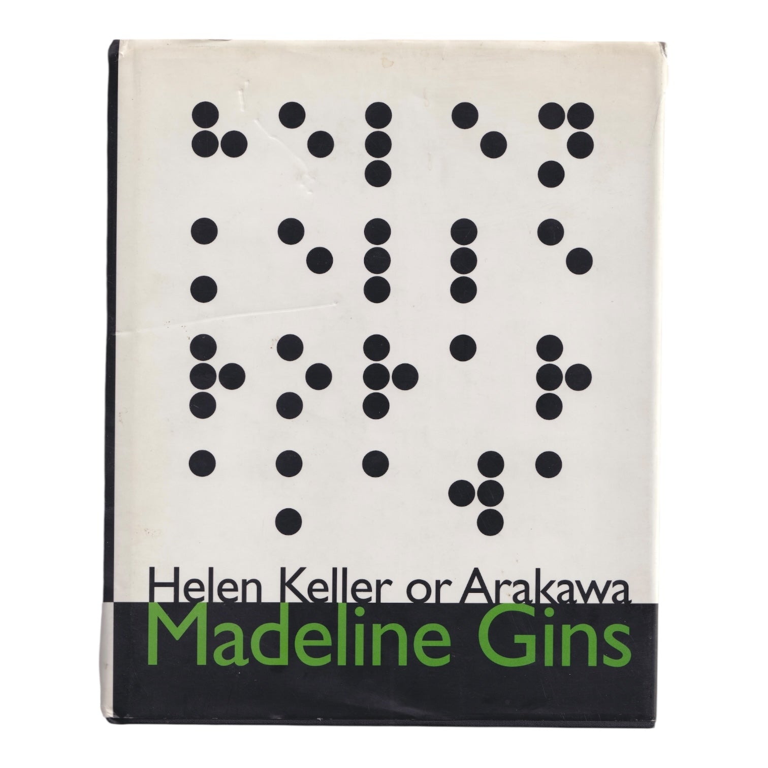 Helen Keller or Arakawa, Signed and inscribed by Gins, Burning Books with East/West Cultural Studies, Santa Fe (1994), by Madeline Gins, Hardcover with dust jacket, unpaginated (314 pages), approximately 19.1 × 13.3 cm, very good