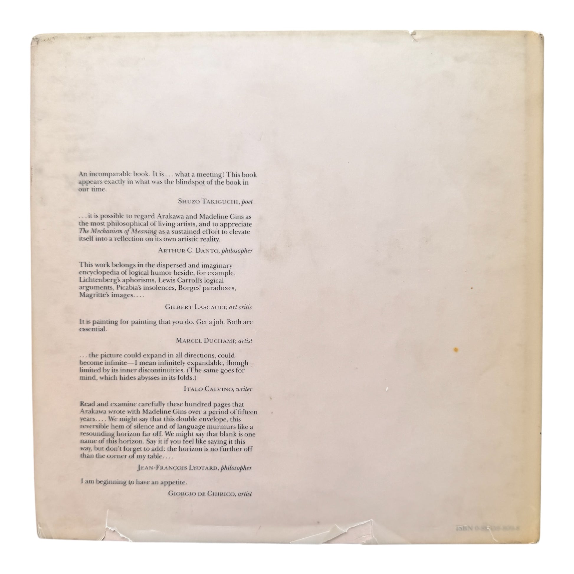 The Mechanism of Meaning, Abbeville Press, New York (1988), by Shusaku Arakawa & Madeline Gins, Hardcover with dust jacket and transparent overlay inserts, 168 pages, 29.3 × 28.8 cm, Nice condition (light tearing to dust jacket)
