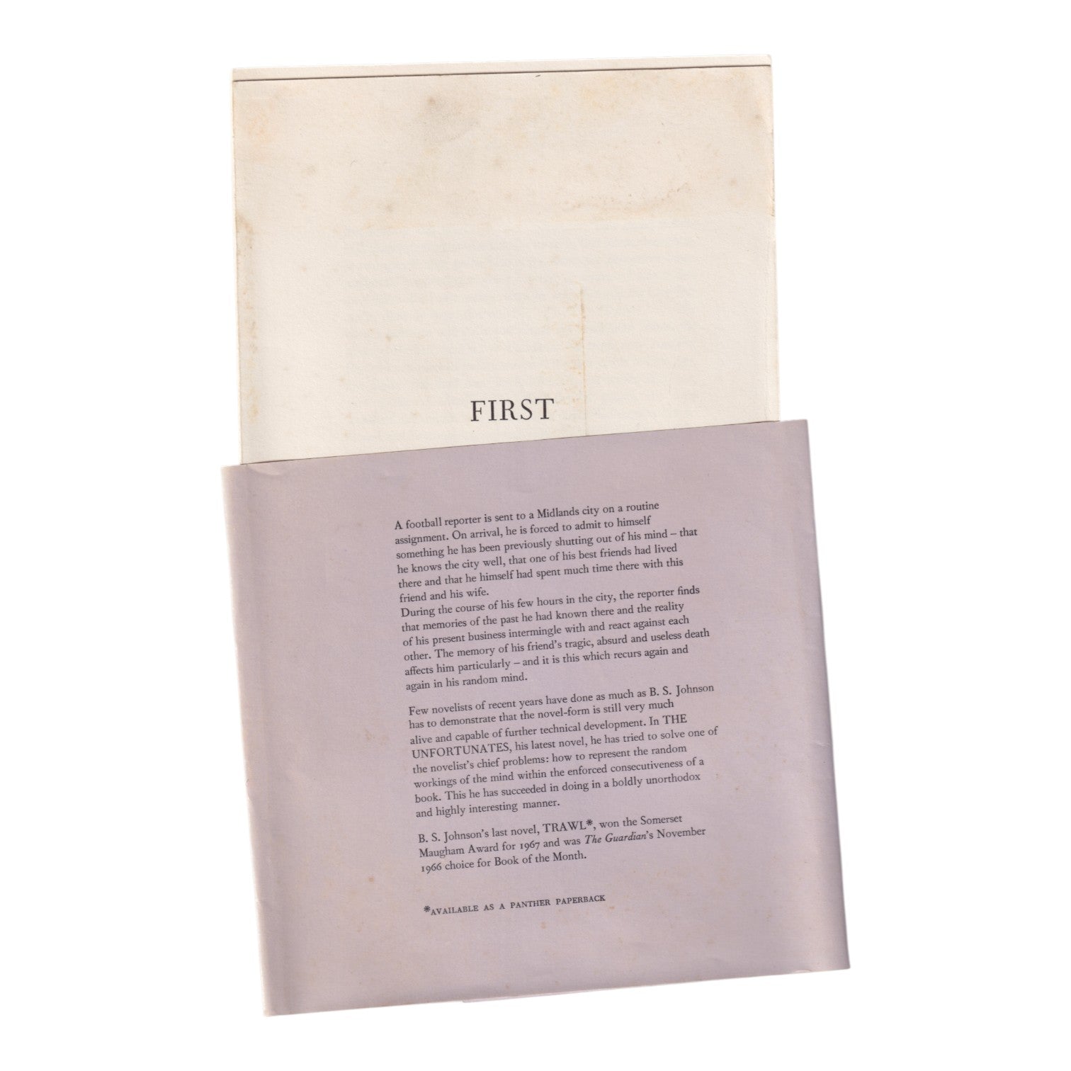 The Unfortunates, London (1969), by B. S. Johnson, Secker & Warburg in association with Panther Books, issued as a boxed set with 27 unbound chapters (including designated First and Last, plus 25 randomised sections), all housed in the original presentation box with wraparound band, Wear and staining consistent with age, no major structural damage, but notable cosmetic imperfections